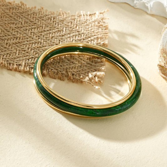 Satz von 3 goldenen Armreifen und grünem Harz