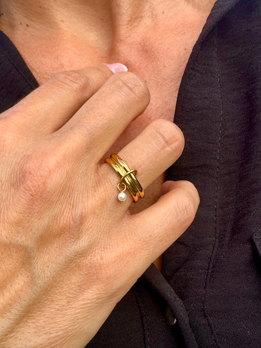 Mehrreihiger, eng anliegender Ring mit goldener Fassung und Stein: Vert