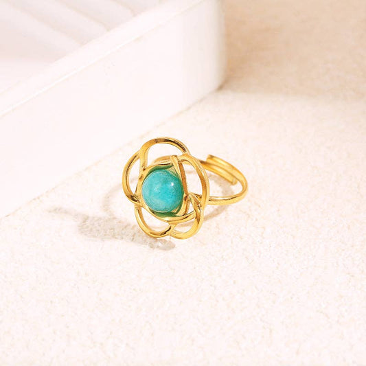 Vergoldeter Blumenring mit rundem Innenstein
