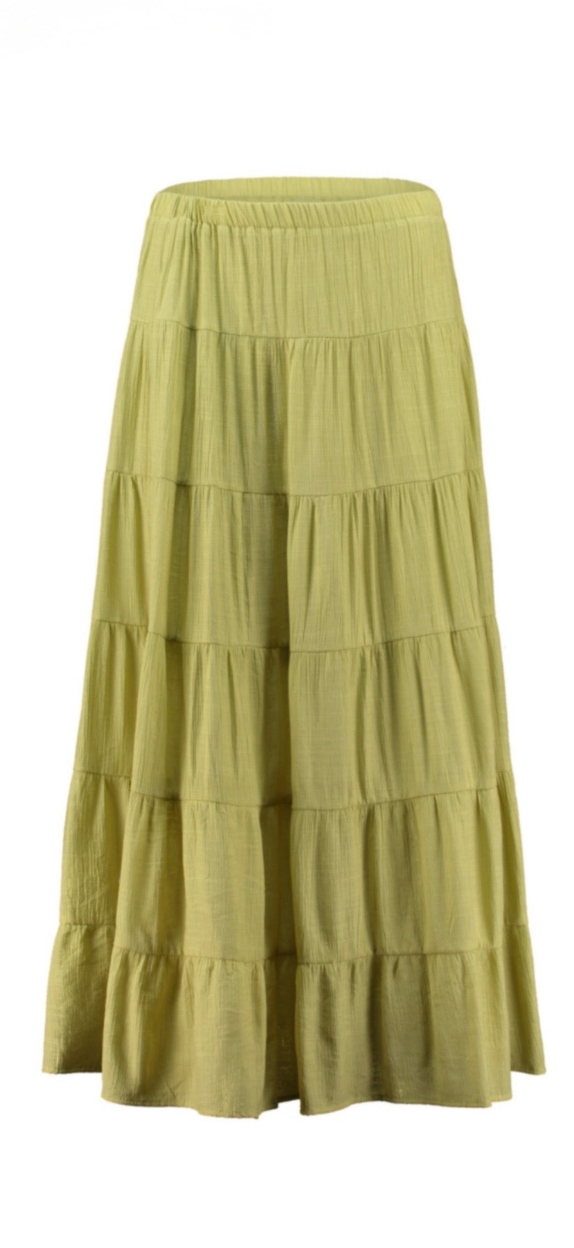 Boho Maxirock in Olivgrün – Stufenrock mit elastischem Bund | Damen Sommerrock