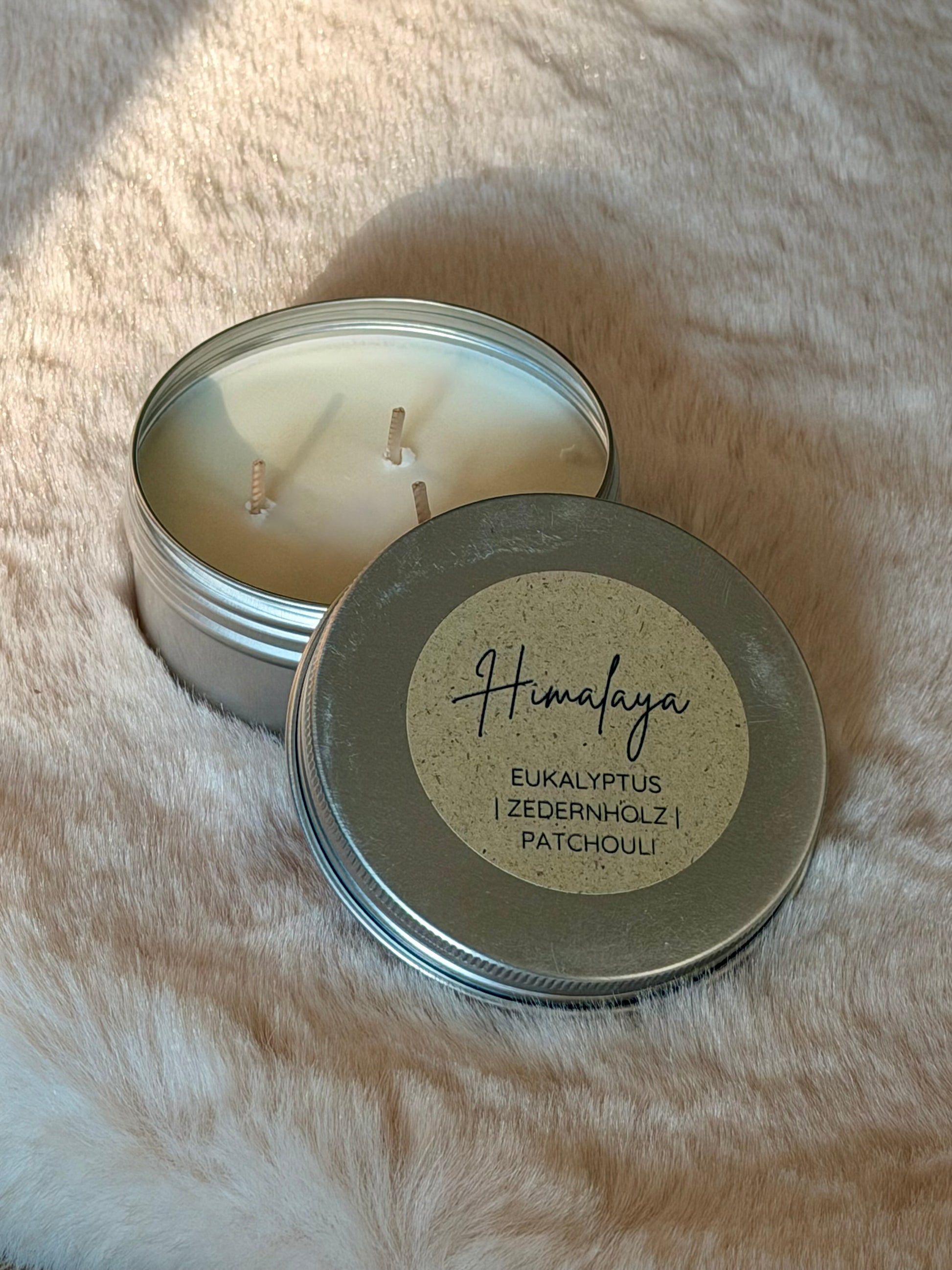 Die handgegossene Duftkerze „Himalaya“ bringt den Duft reiner Bergluft in dein Zuhause.