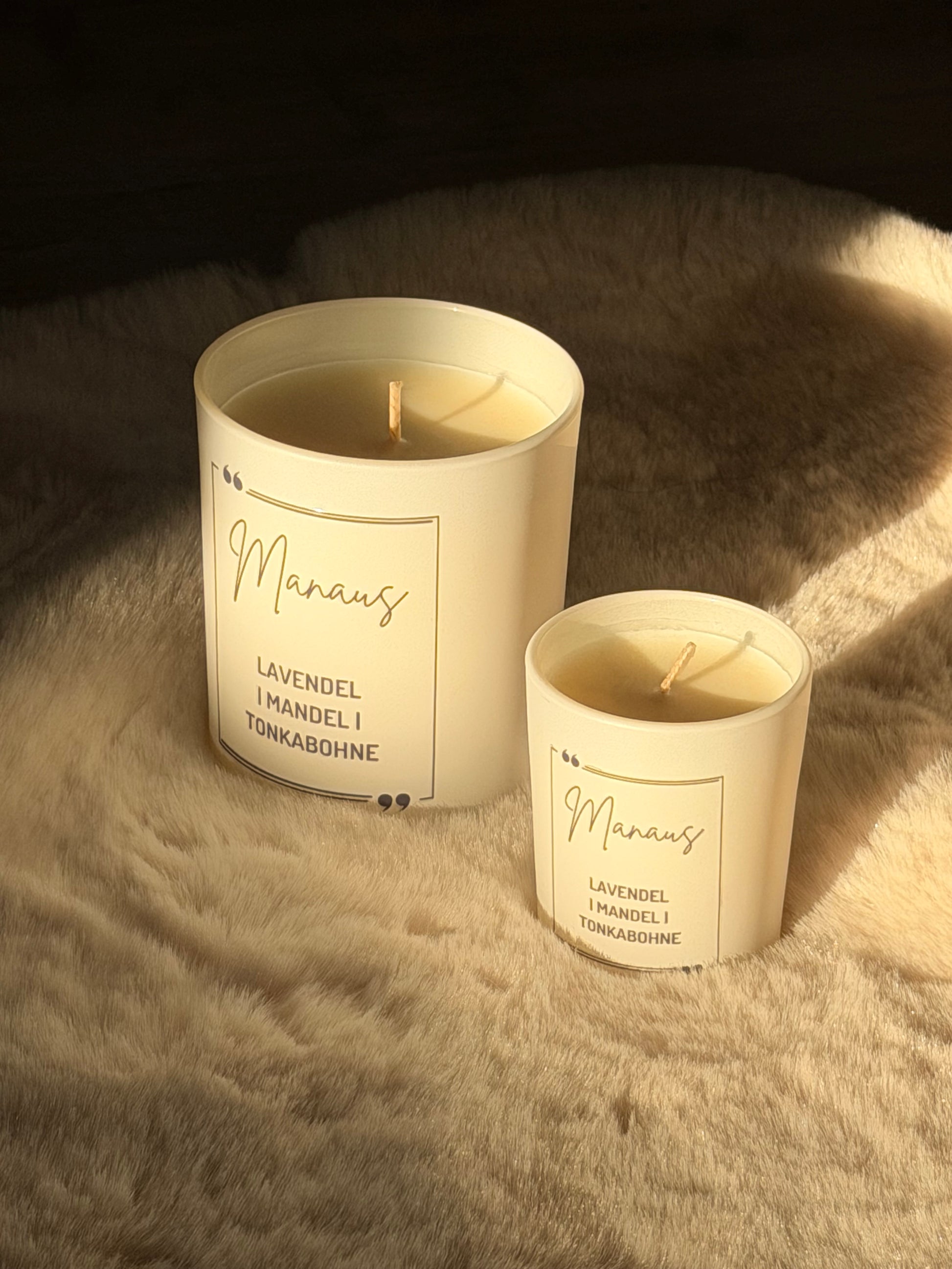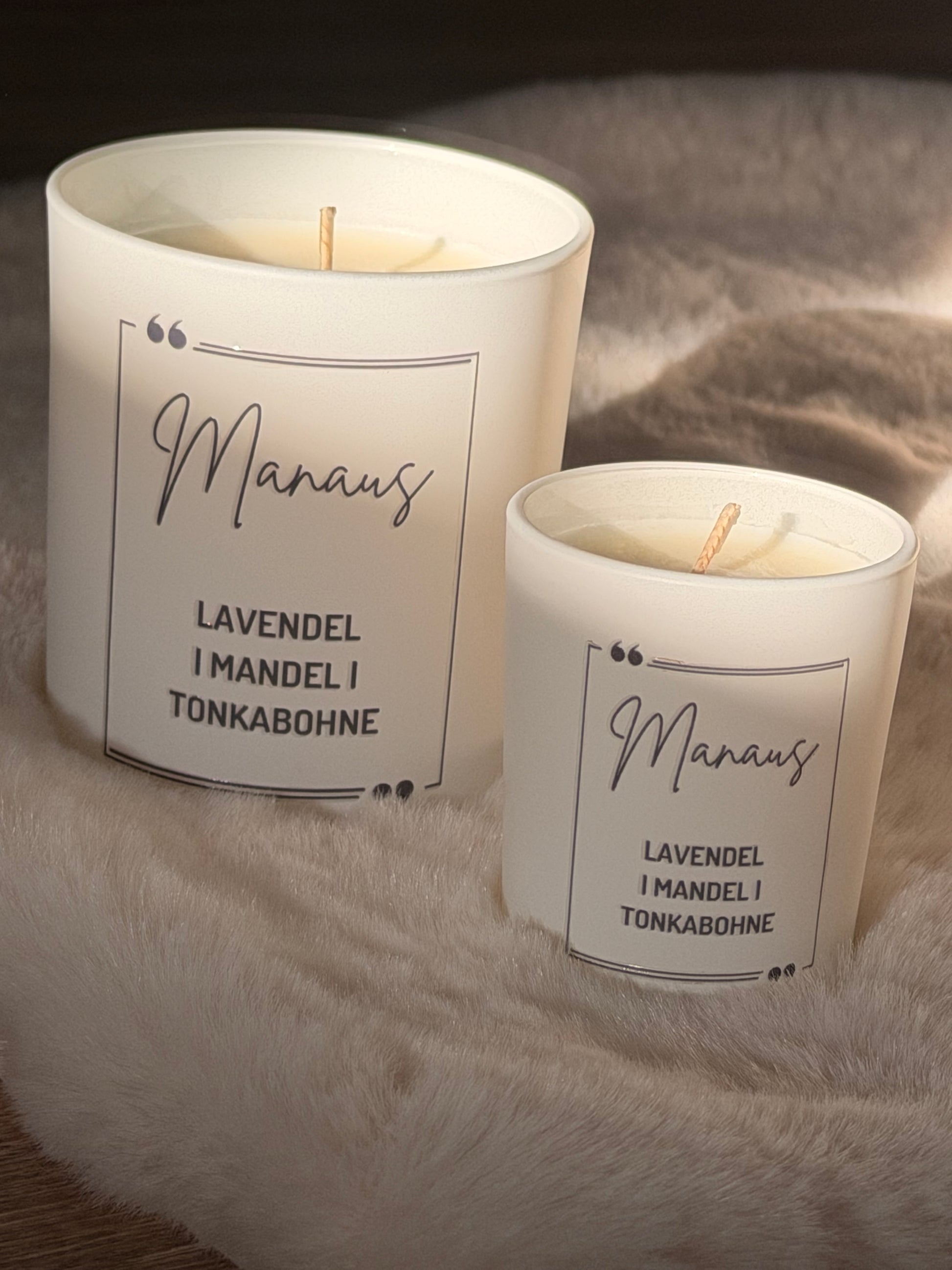 Erlebe pure Ruhe mit der handgegossenen Duftkerze „Manaus“ von hyggelich Torgau.