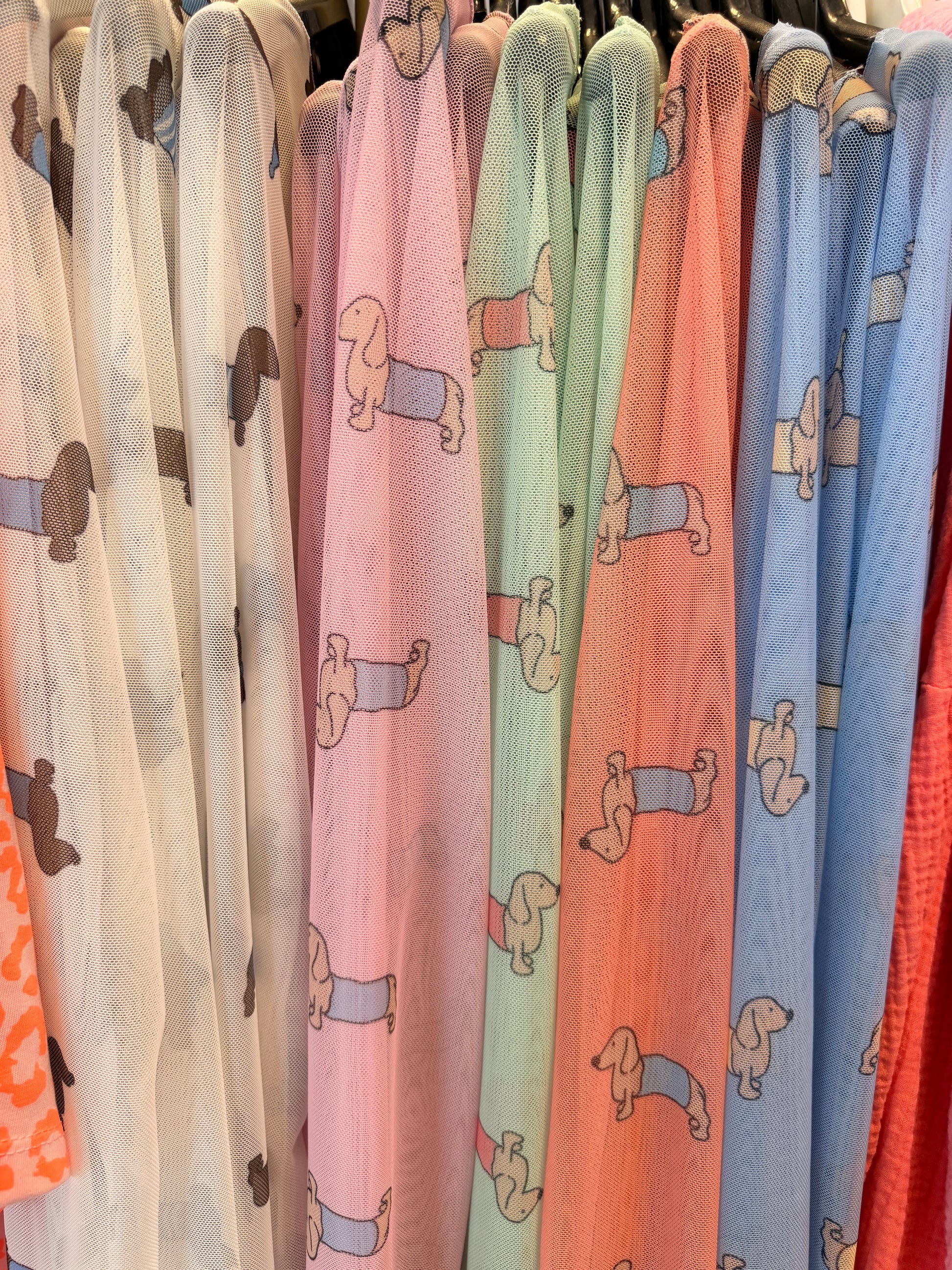 - Design: transparenter Mesh Stoff mit Dackel Print