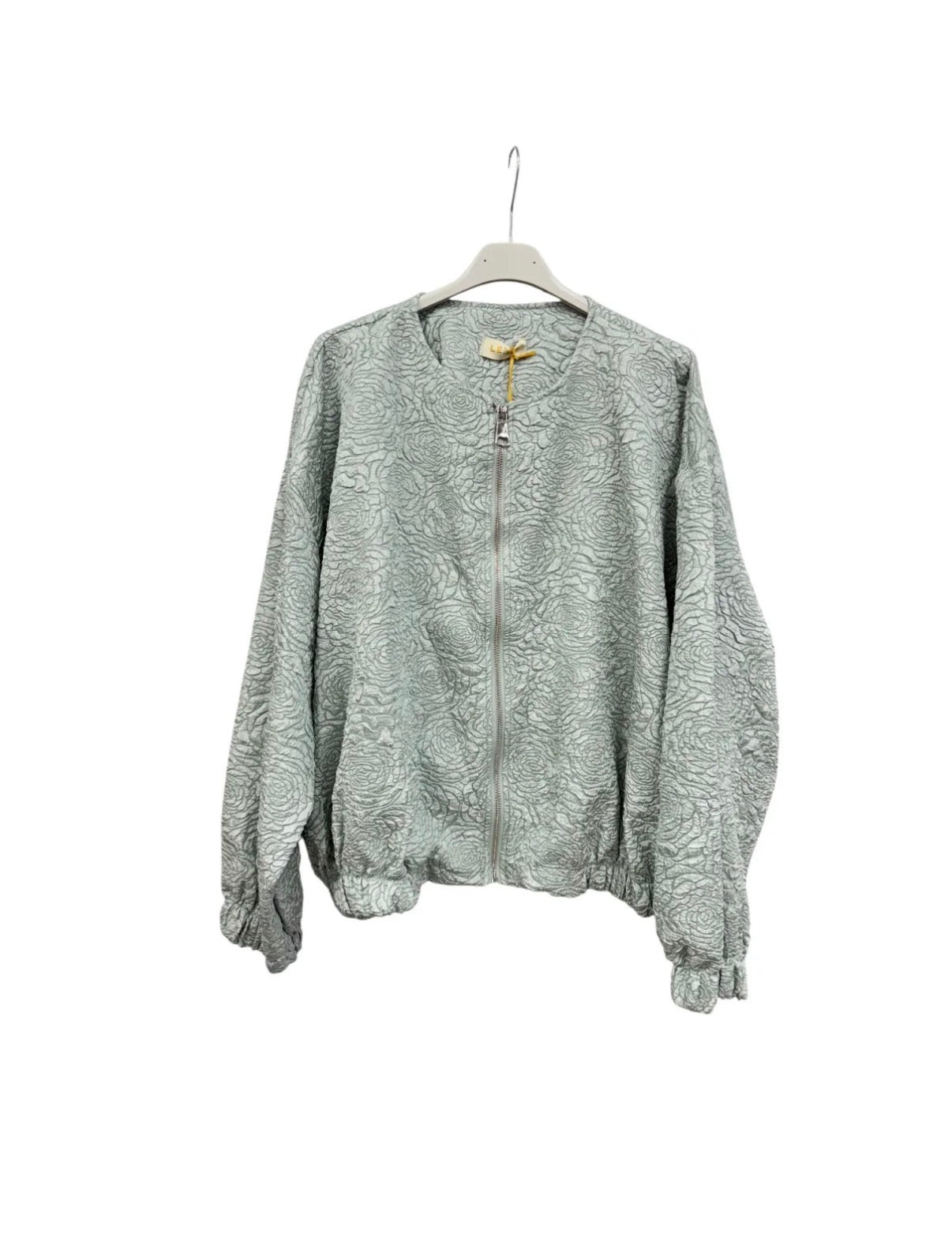 Das satinartige Material mit eingewebtem Blumenmotiv sorgt für eine edle Optik, während der lockere Bomber-Schnitt maximalen Komfort und lässigen Chic bietet.