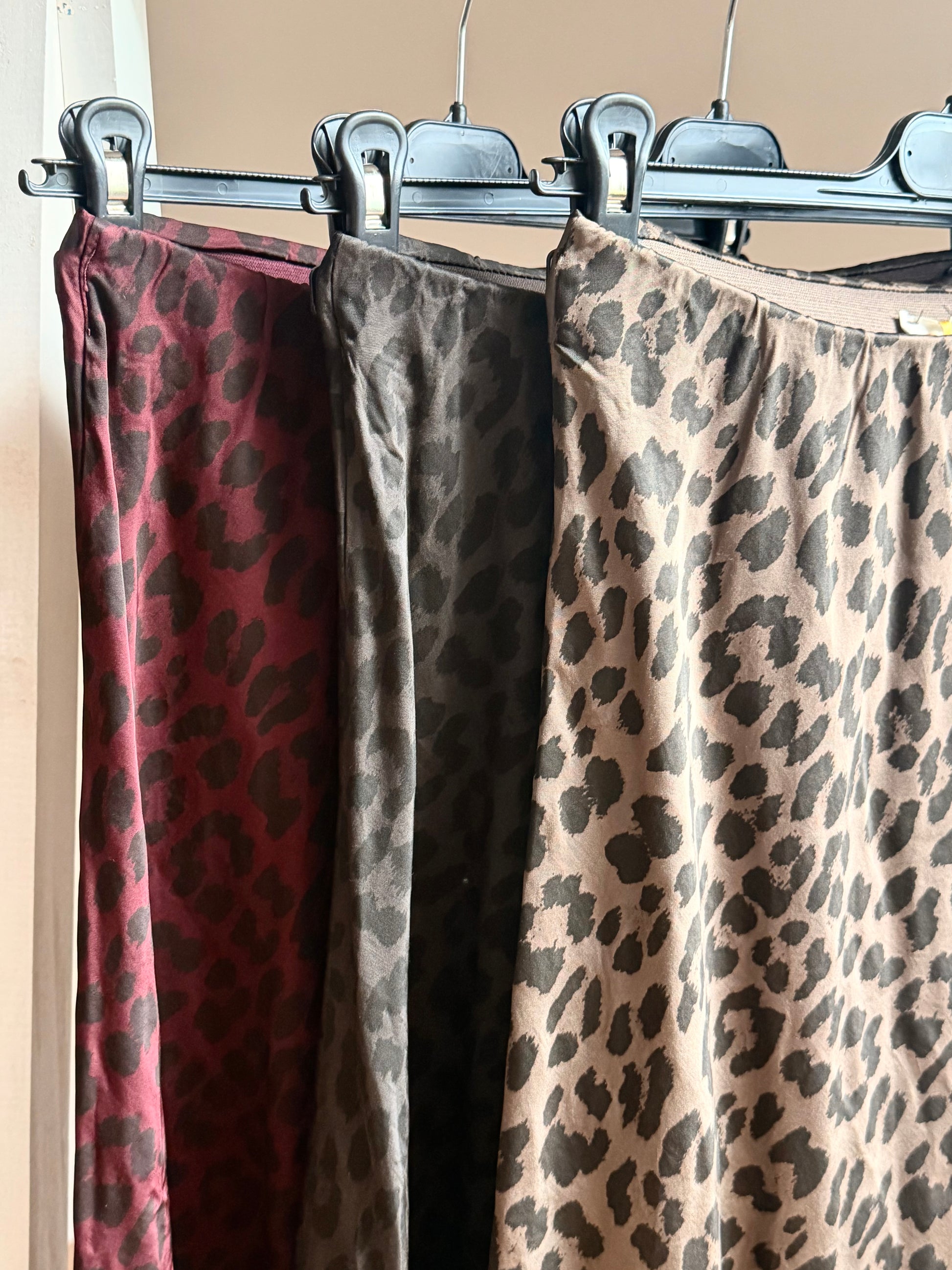 Setze ein Fashion-Statement mit unserem Satin-Midirock im angesagten Leo-Muster.